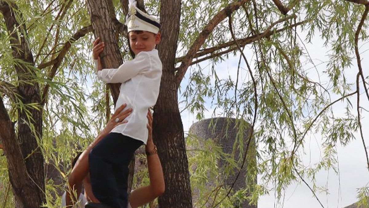 Çocukların doyasıya eğlendiği organizasyonda sünnet olmaktan korkan 6 yaşındaki Mehmet Bekteş, sosyal tesisteki bir ağaca tırmandı.