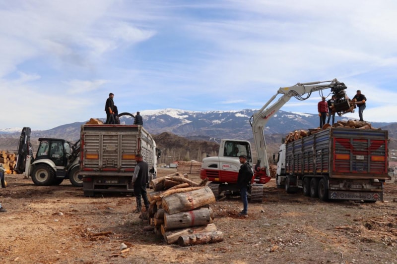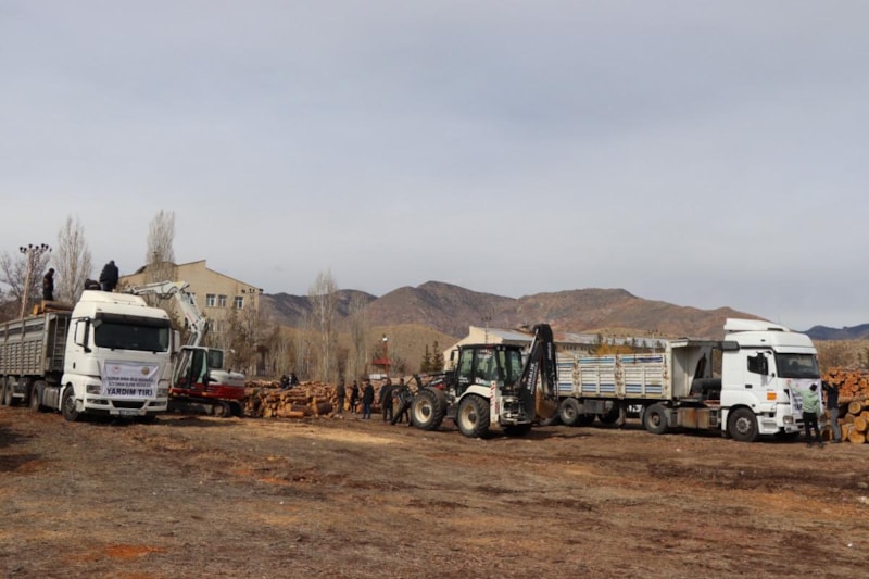 Oltu'da çalışan orman işletmesi çalışanları, deprem bölgesine 10 tır dolusu yaklaşık 150 ton yakacak odun gönderdi.