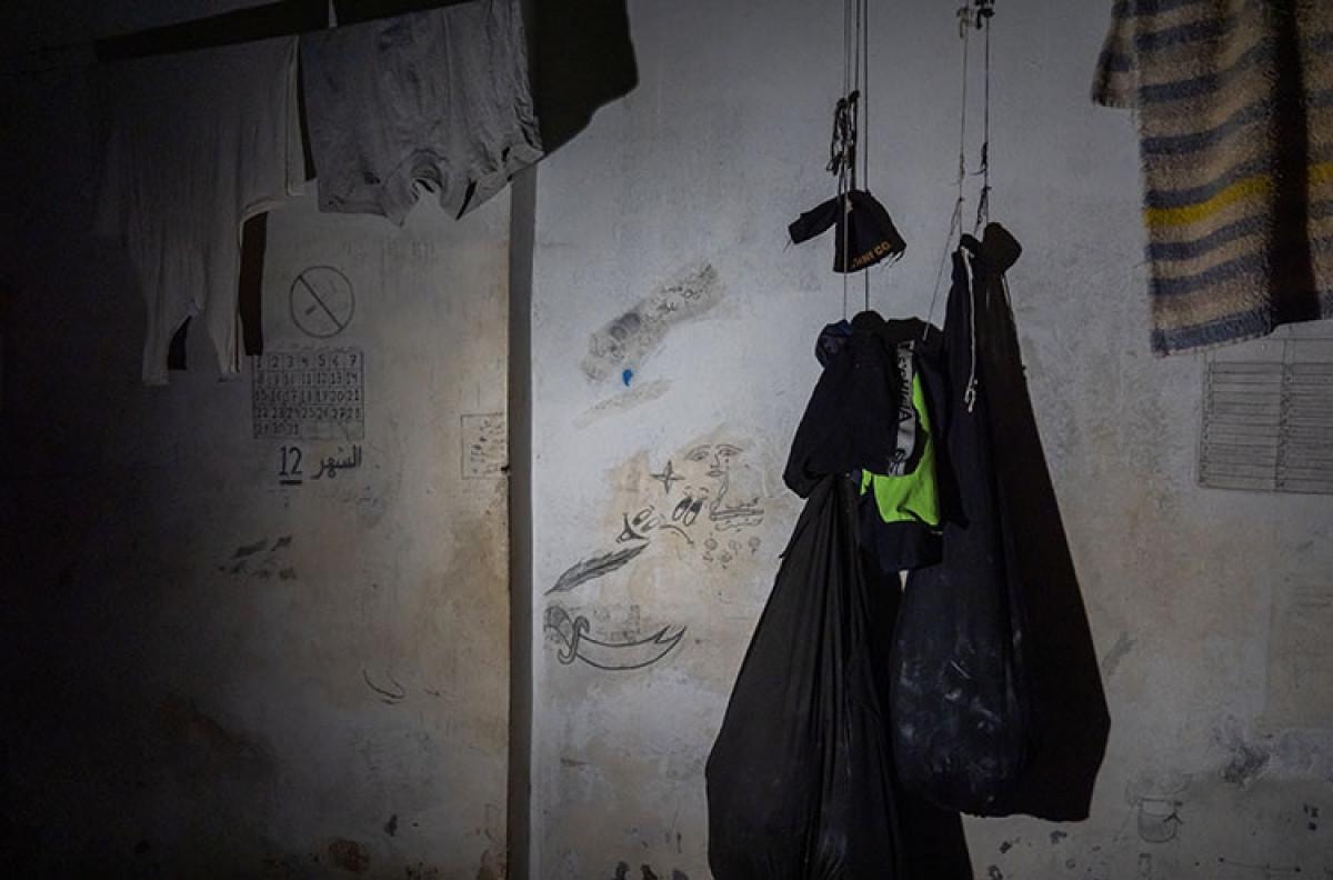Hücrelerin duvarları, buradaki insanların umutlarını ve acılarını taşıyan yazılarla doluydu. Türkçe olarak kazınmış “Cimbom GS” ve “Canım memleketim 34 İstanbul” ifadeleri dikkat çekerken, Arapça olarak “Allah’ım bizi kurtar”, “Annem”, “Sana sığındık ya Ali” ve “Bu kabus yarın son bulacak” gibi yazılar göze çarptı. Mahkumlar, hücrelerin karanlığında zeytin çekirdekleriyle ağaçlar, evler, gökyüzü ve özgürlüğü hayal eden çizimler yapmış; isim listeleri, takvimler ve gün sayma çentikleriyle zamanın akışını takip etmeye çalışmışlardı.