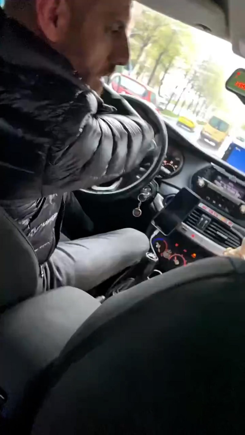 Kadın yolculardan birisinin kendisini kayda aldığını gören taksici, daha çok sinirledi.
