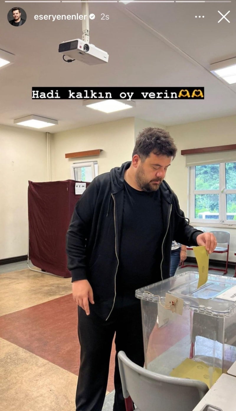 Eser Yenenler de oy kullanan isimler arasında yer aldı. Başarılı komedyenin oy kullanmaya yalnız geldiği görüldü.