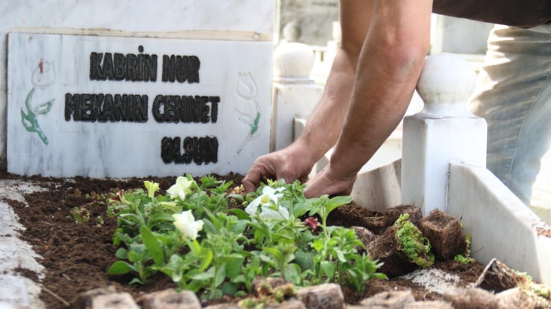 Bu işlemin ardından mezarın toprağının eksik kısımlarını tamamlayıp isteğe göre çiçeklendirme yapan Namık Kemal Şahinli, son olarak ise mezar taşlarını temizleyip adeta parlatıyor.