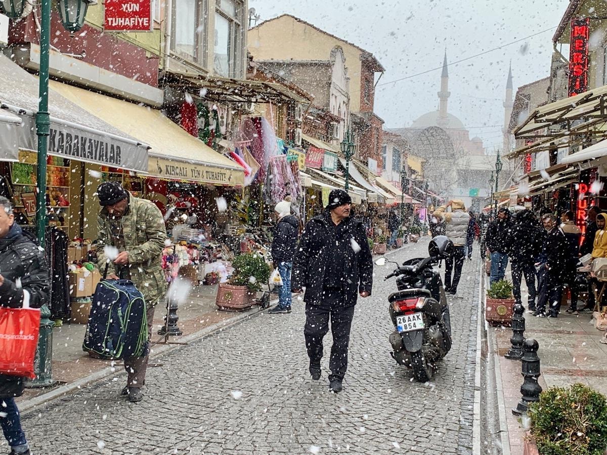 Eskişehir’de hava sıcaklığının 10 ila 15 derece arasında düşmesiyle birlikte kentte ara ara kar yağışı etkili oldu.