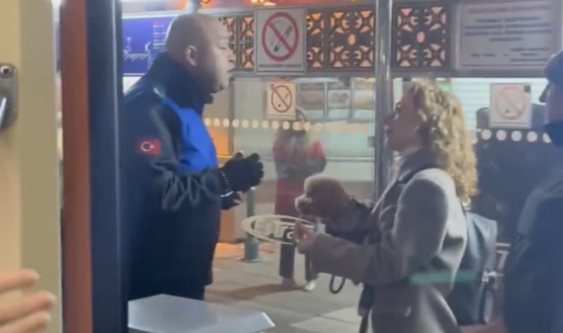 Tartışma esnasında tramvayın durdurulduğu görülürken belediye görevlisi, "Yapılan anons doğrultusunda köpeğin araçtan indirilmesi gerekiyor" ifadelerini kullandı.
