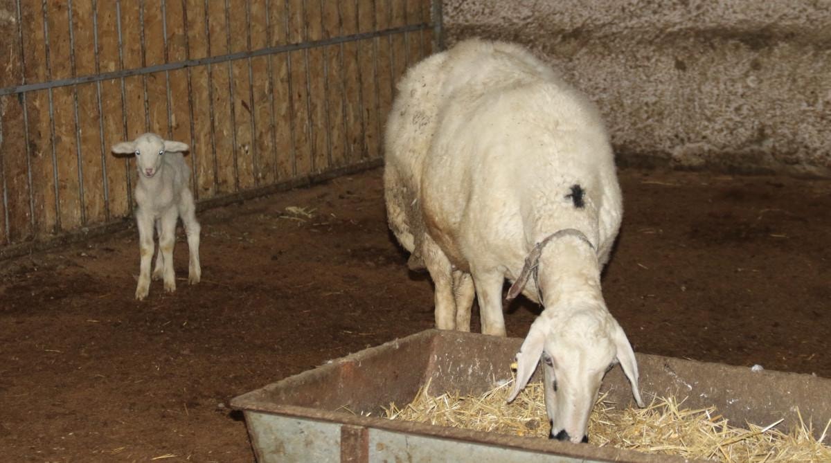 Eskişehir'in Tepebaşı ilçesindeki bir çiftlikte koyun, yeni doğmuş kuzusunu ahırda emzirmeye başladı.