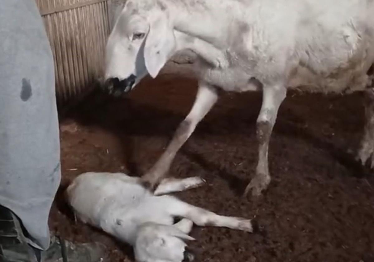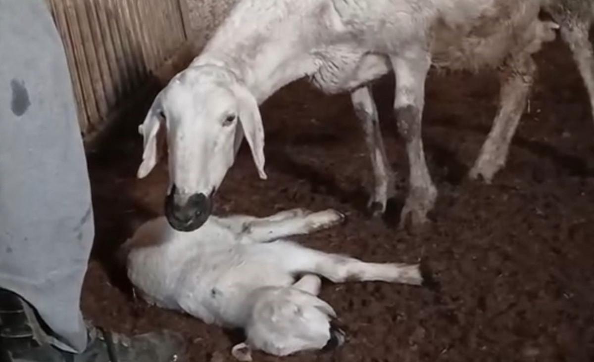 Ayakları ile ölen kuzusuna kalp masajına benzer bir hareket yapan koyun, çaresizce melemeye başladı.