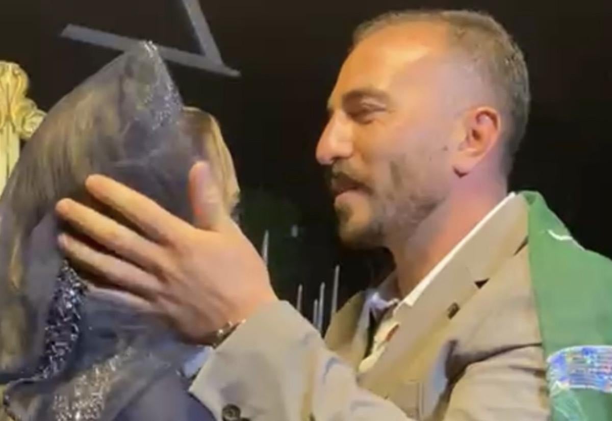 Oldukça mutlu olduğu görünen ve yakınları tarafından cep telefonuyla kaydedilen görüntülerde Tolunay Kocaman’ın, eşinin alnından öptüğü görülüyor.