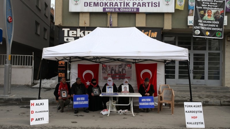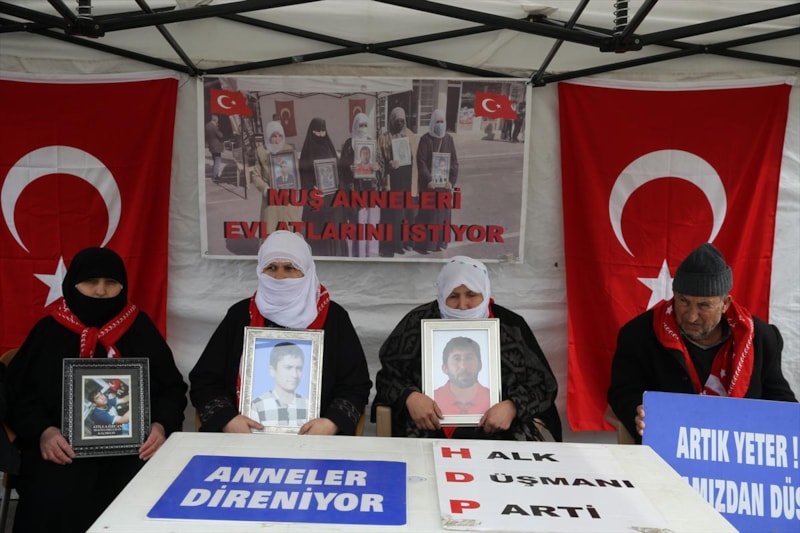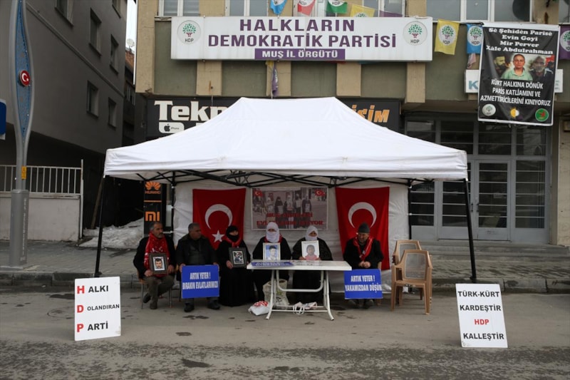 Gözü yaşlı aileler, "Halk düşmanı parti", "Evlatlarımızı vereceksiniz", "Ha HDP ha PKK", "Türk-Kürt kardeştir, HDP kalleştir", "Halkı dolandıran parti", "Anneler direniyor", "Artık yeter yakamızdan düşün" ve "Yeter artık evlatlarımızı bırakın" yazılı pankartlar açıyor.