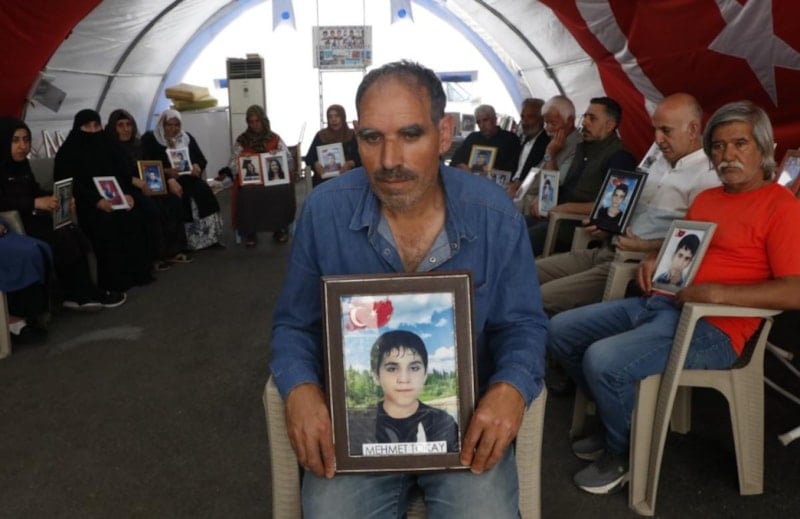 Diyarbakır'da terör örgütü PKK tarafından kaçırılan çocukları için eski HDP il binası önünde evlat nöbeti tutan ailelerden Nihat Aydın, örgütün bir an önce fesih kararı almasını beklediklerini söyledi.