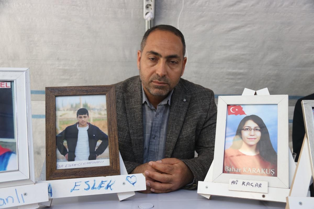 5 bayramdır oğlundan haber alamadığını söyleyen baba Eslek, “HDP’nin kapısında İsa'mdan herhangi bir haber gelmesini bekliyoruz. Oğlum, her ne şekilde gitmişsen biran önce yuvana, kardeşlerinin arasına dön gel. Maalesef bayramı HDP binası önünde geçiyoruz” dedi.