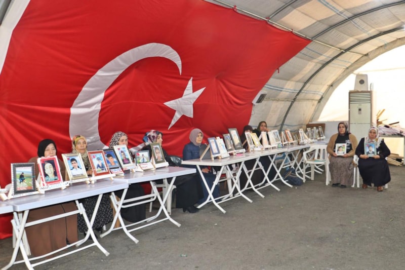 Çocuklarının terör örgütü PKK tarafından kaçırıldığı iddiasıyla 3 Eylül 2019'da farklı kentlerden Diyarbakır'a gelen ailelerin HDP il binası önünde başlattığı oturma eylemi, 1576 gündür devam ediyor.