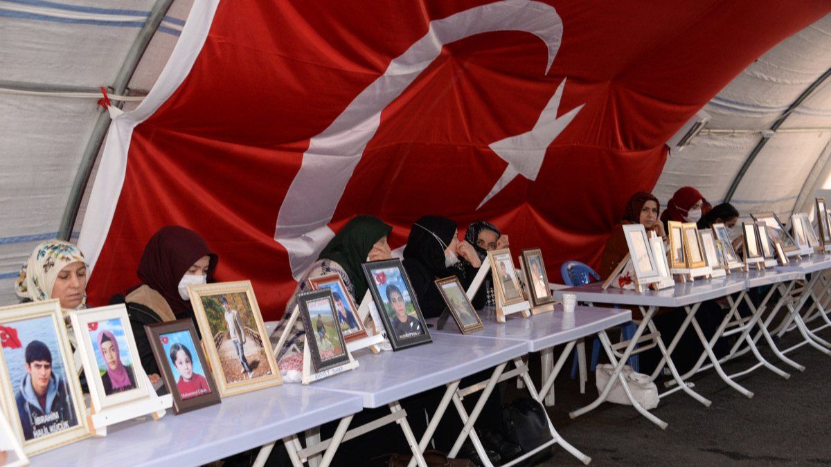 Diyarbakır’da, evlatları PKK tarafından kandırılarak dağa kaçırılan ailelerin 3 Eylül 2019’da HDP İl Başkanlığı binası önünde başlattıkları oturma eylemi, 814’üncü gününe girdi.