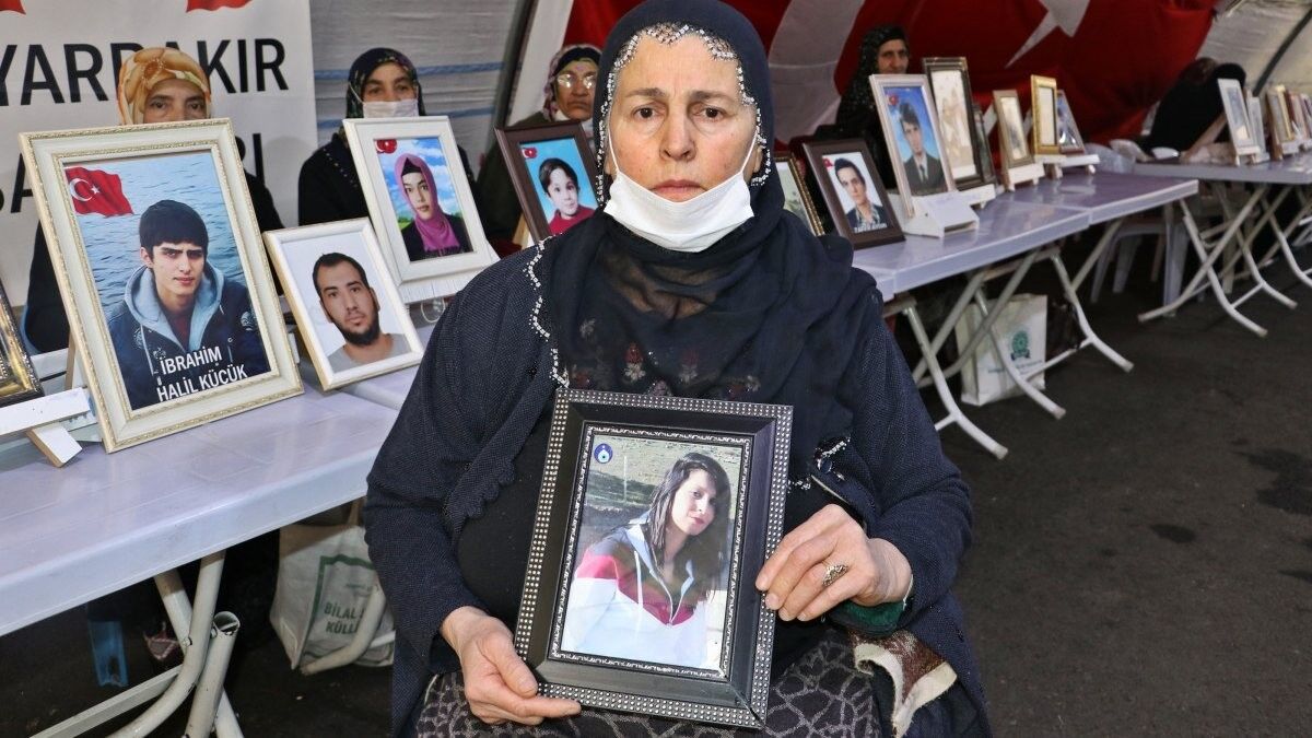 Diyarbakır’da, evlatları PKK tarafından kandırılarak dağa kaçırılan ailelerin 3 Eylül 2019’da HDP İl Başkanlığı binası önünde başlattıkları oturma eylemi, 857’nci gününe girdi.