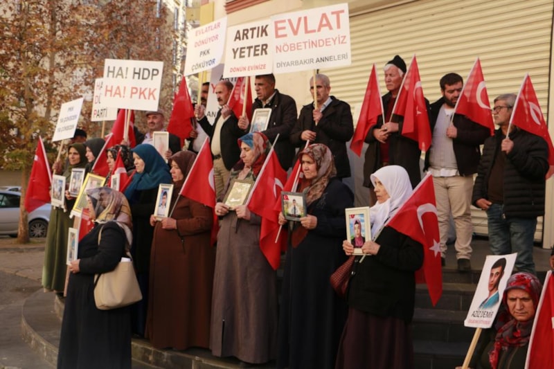 Farklı kentlerden gelerek evlatlarına 'teslim ol' çağrısında bulunan gözü yaşlı ailelerin direnişi bin 235’inci güne ulaştı.