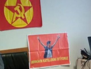 O ana ilişkin eylemciler tarafından paylaşılan fotoğrafta ise bir detay dikkat çekti. Savcının odasına örgüt flamaları ile birlikte Berkin Elvan'ın fotoğrafının yer aldığı bir poster asıldı.
