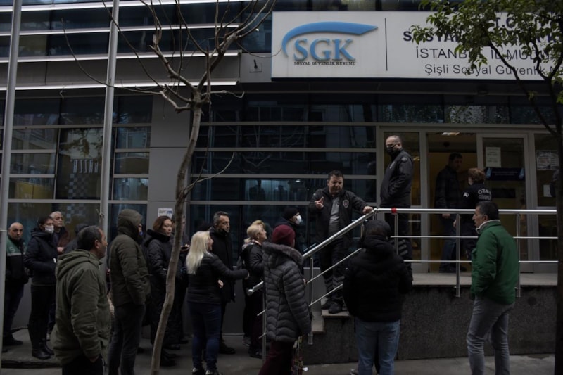 Burada emeklilik için bekliyorum. Diyorlar ki bana, 'İş yerinden çıkış belgesi alacaksınız'. Ben 2019'da çıkış belgesi aldım, sisteme yansımamış. E-Devlet'ten 3-4 gündür uğraşıyorum, giremedim. Şu anda sıra bekliyorum. Alo 170'i aradım 'hiçbir sıkıntı yok' dedi. Buraya sabahın köründe geldim sıra bekliyoruz.