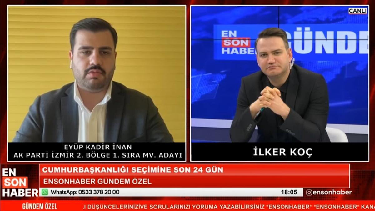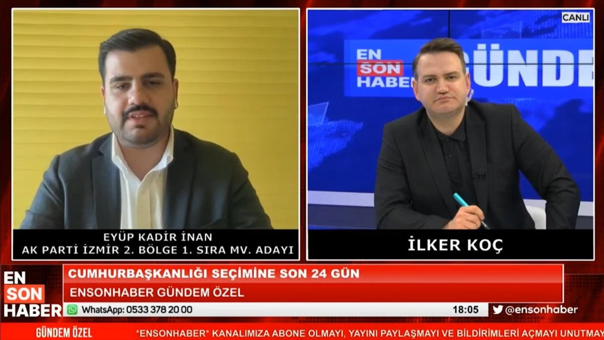 Çalışmalarını sürdüren AK Parti İzmir 2. bölge 1. sıra milletvekili adayı Eyüp Kadir İnan da bu kapsamda Ensonhaber'e konuk oldu.