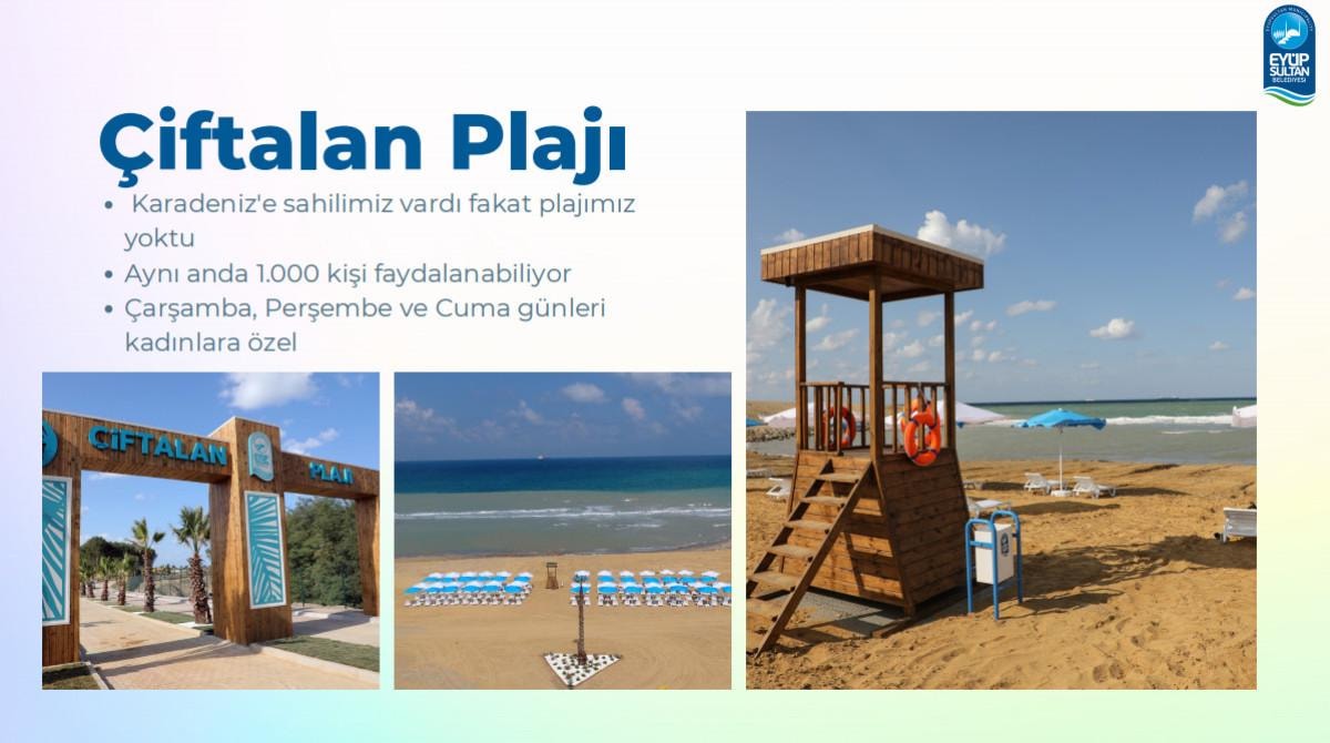 Eyüpsultan’ın Karadeniz’e sahili vardı fakat plajı yoktu. Eyüpsultan Belediyesi tarafından yapılan Çiftalan Plajı’ndan aynı anda 2000 kişi faydalanabiliyor.