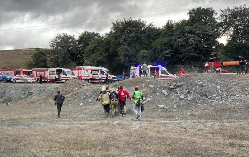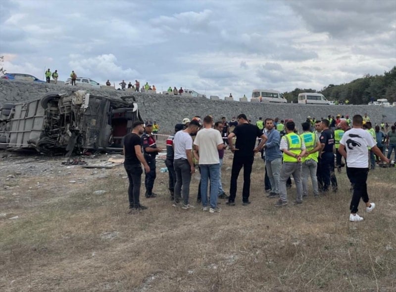 Otobüste sürücü ve 46 kişinin bulunduğu, kazada ilk belirlemelere göre 29 kişinin yaralandığı öğrenildi.