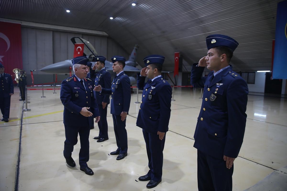 Tören mezun olan F-16 pilotlarının diploma töreni ile devam ederken, dönem birincisi Pilot Üsteğmen Geyik, diplomasını Hava Kuvvetleri Komutanı Hava Orgeneral Ziya Cemal Kadıoğlu'nun elinden aldı.
