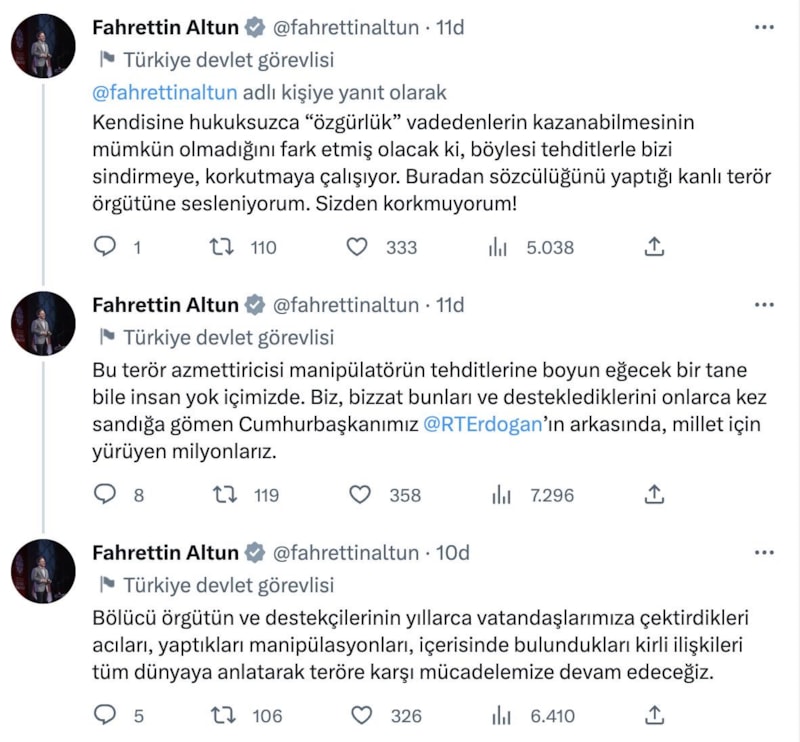 Cumhurbaşkanlığı İletişim Başkanı Fahrettin Altun, yaptığı paylaşımda şu ifadelere yer verdi: