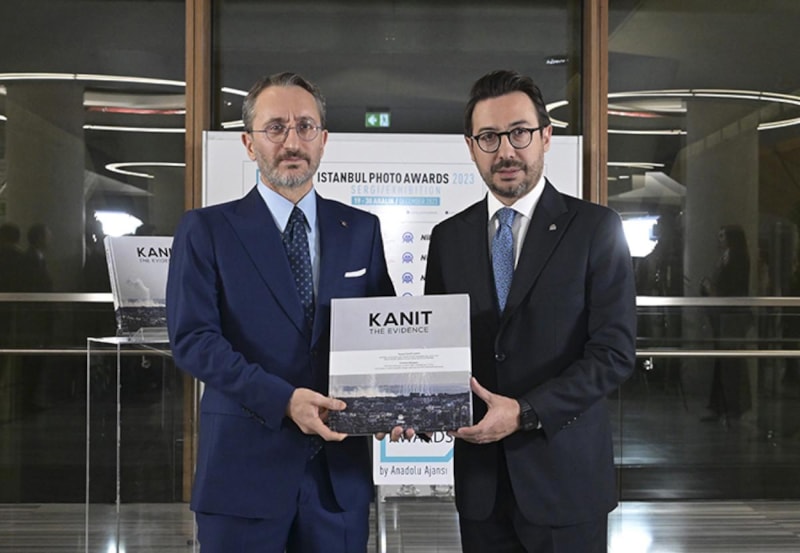 Anadolu Ajansı Genel Müdürü Serdar Karagöz, İletişim Başkanı Fahrettin Altun'a İsrail'in Gazze'de işlediği suçları tüm açıklığıyla ortaya koyan ve temel delil niteliğinde olan görsellerin yer aldığı "Kanıt" isimli kitabı hediye etti.