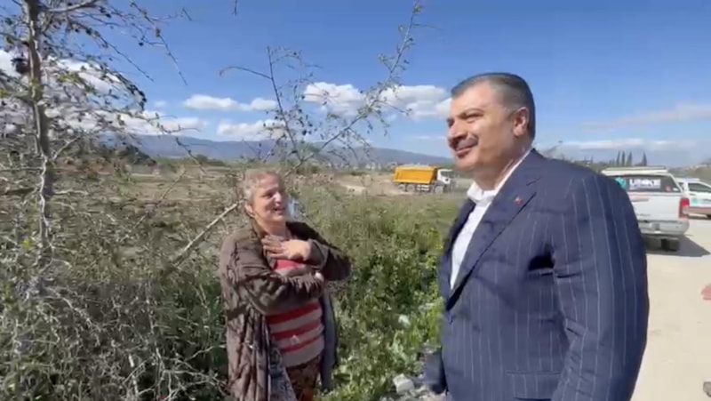 Bakan Koca'yı "Hoş geldiniz" diyerek karşılayan depremzede duygulandı.