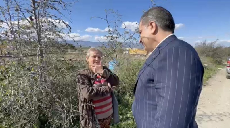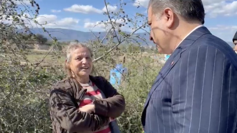 Koca'nın bir depremzede ile konuşması ise kameralara yansıdı.