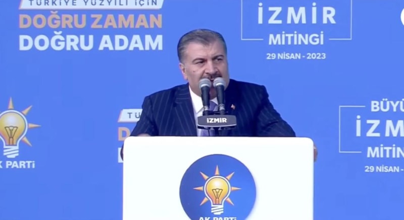 Kalabalık İzmir mitinginde tarihi kalabalığa hitap eden Sağlık Bakanı Fahrettin Koca, şehre kazandırılan İzmir Bayraklı Şehir Hastanesi hakkında bilgi verirken, Türkiye'nin sağlık alanında hayata geçirdiği dünyanın inanamayacağı projelerle vatandaşı hiçbir zamana hizmetten mahrum bırakmadıklarını söyledi.