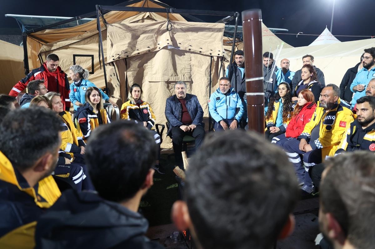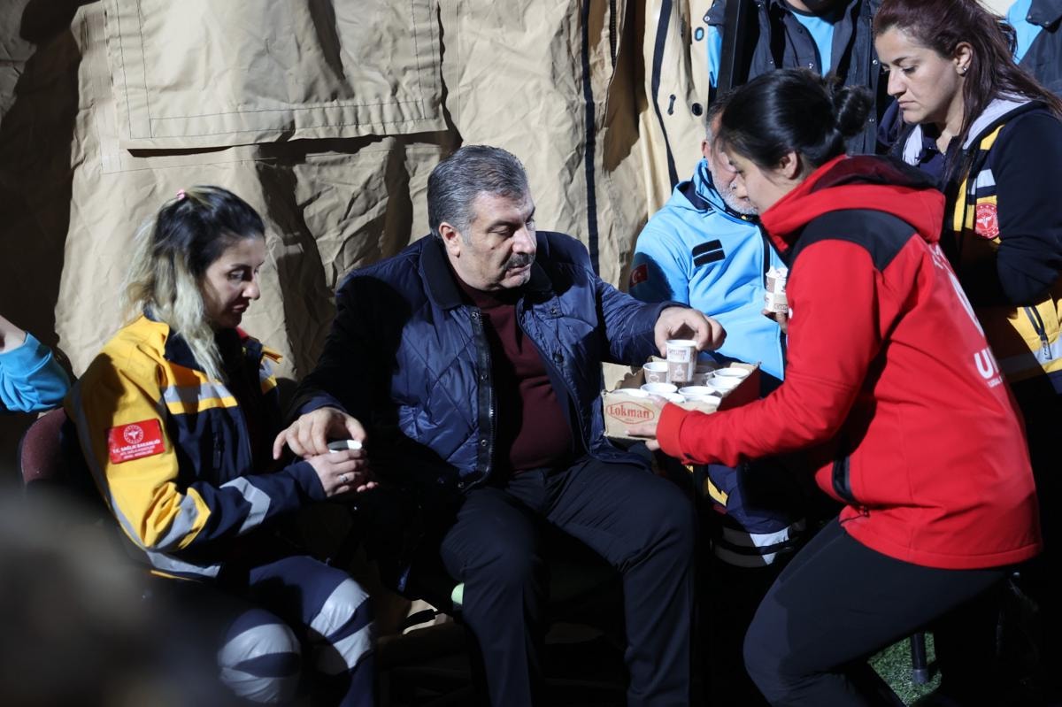 Sağlık Bakanı Fahrettin Koca, Ramazan ayının ilk sahurunda Hatay'da görevli sağlık çalışanlarıyla bir araya geldi.