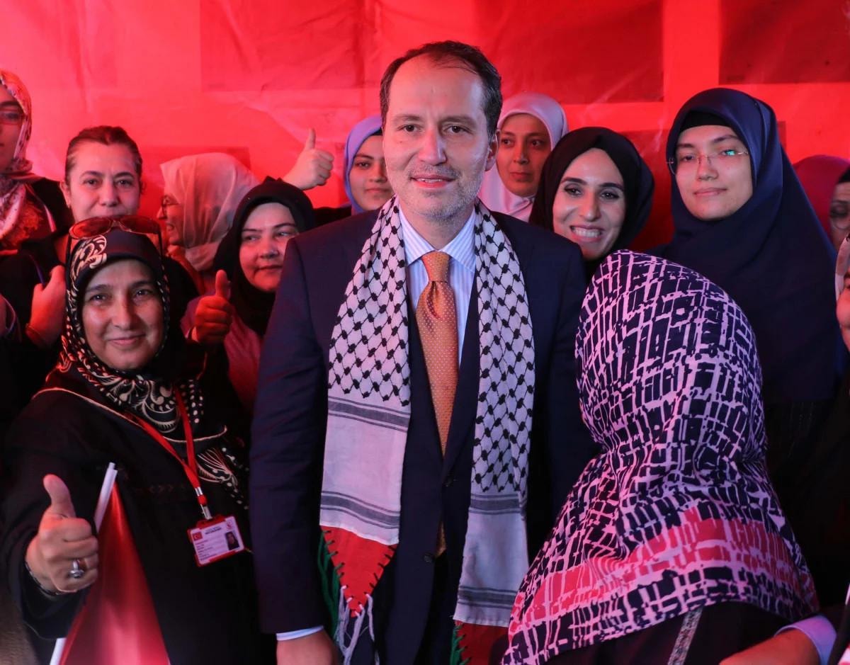 Burada konuşan Erbakan, İsrail'in Filistin'e yönelik saldırılarına büyük tepki gösterdi.