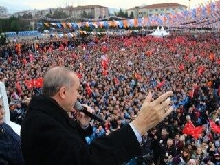 Halkın büyük ilgi gösterdiği mitinglerde AK Parti belediyeciliğini anlatan Erdoğan, yoluna adeta rakipsiz devam ediyor.
