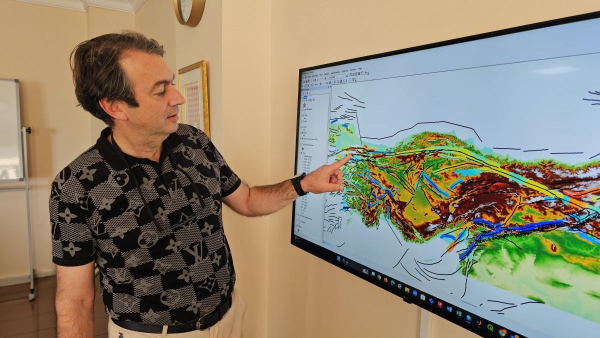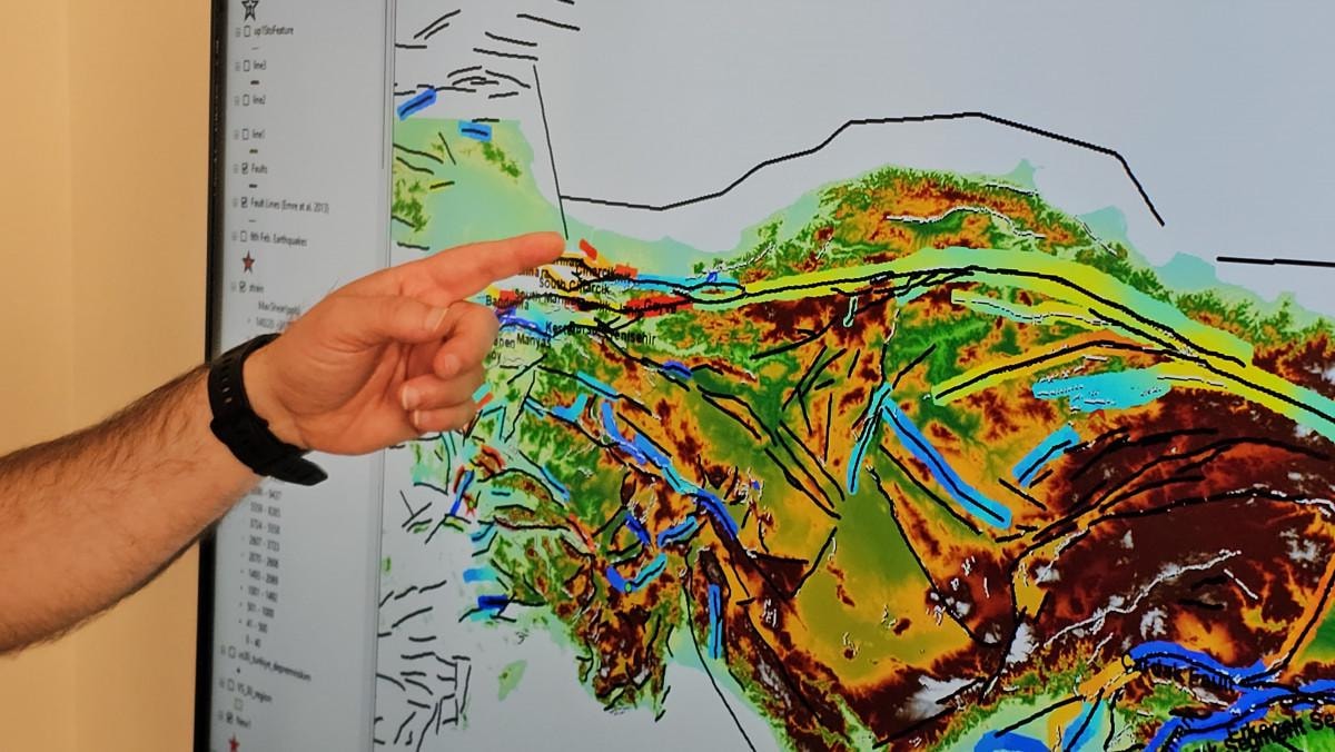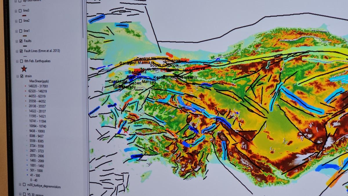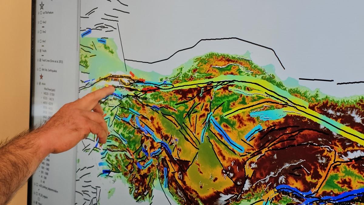Prof. Dr. Kutoğlu, milattan önce 222 yılına kadar geçmiş depremleri de gösteren, yer hareketlerini uydu verileri ve uzay teknolojileri kullanarak, kendileri geliştirdikleri yazılım ile fay hatlarını inceledi.