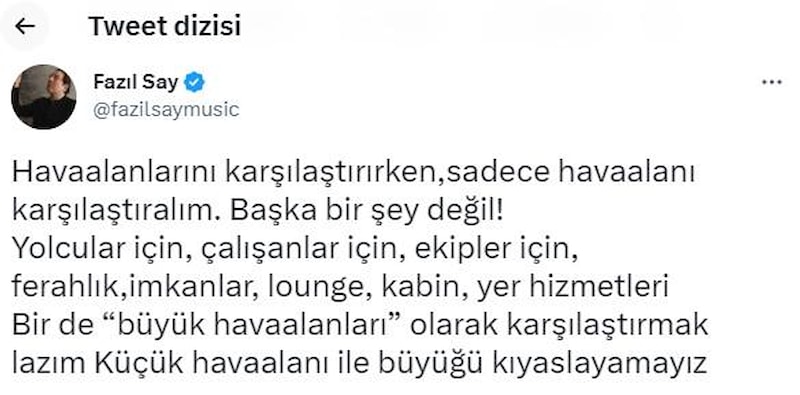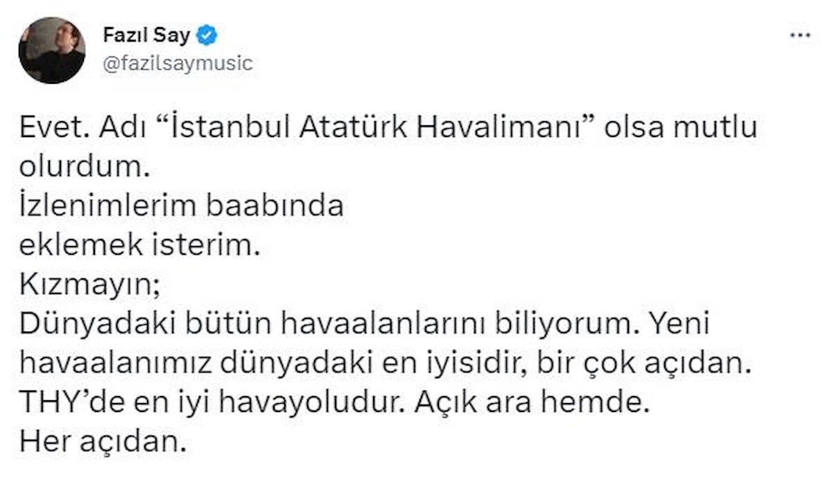 Piyanist Fazıl Say, bu kez gündemine İstanbul Havalimanı'nı aldı.