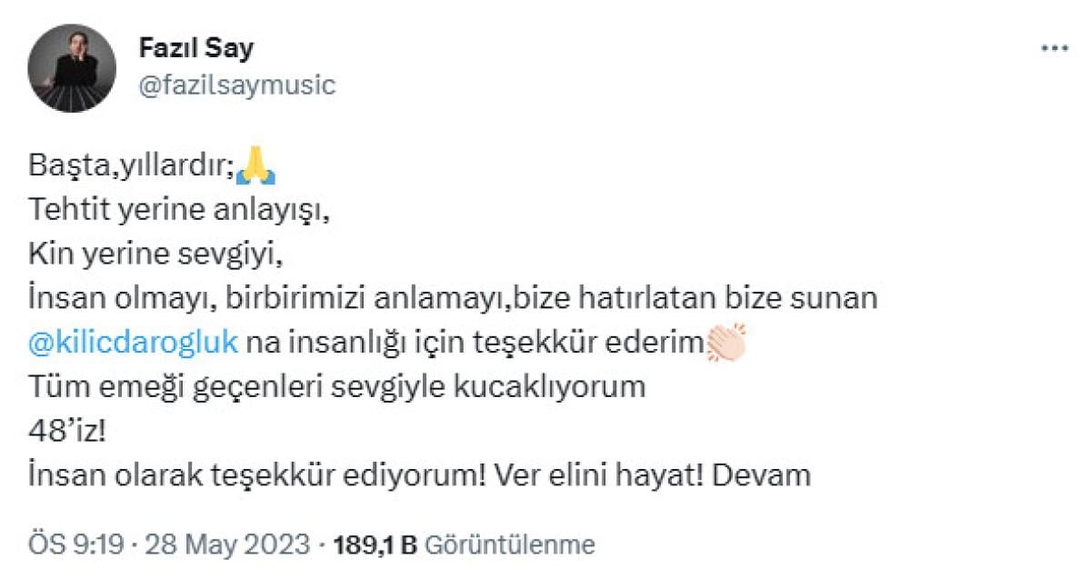 Bu gelişmenin ardından muhalifliği ile tanınan piyanist Fazıl Say’dan bir açıklama geldi.