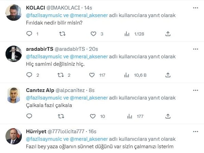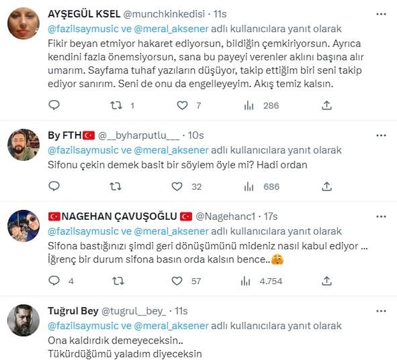 Bu paylaşımın ardından başta kendi takipçileri olmak üzere birçok kişi Fazıl Say'a tepki gösterdi.