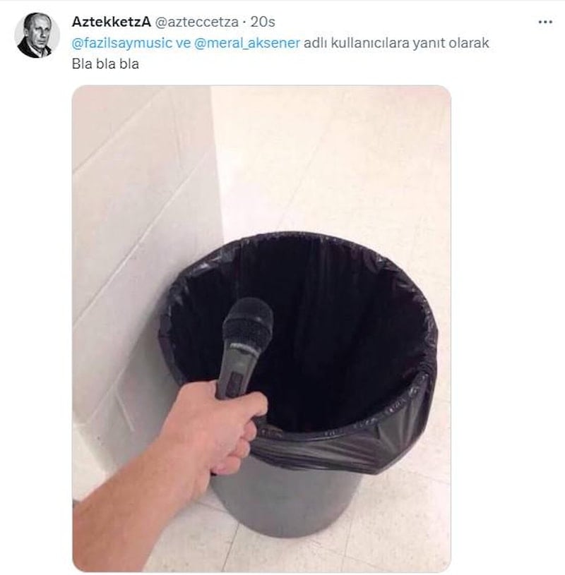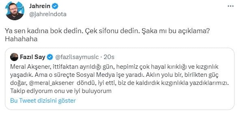 Meral Akşener'in masayı dağıtmasından sonra sosyal medya hesabından hakaret eden Say, "Sifonu çek. Gitsin." yazdı.