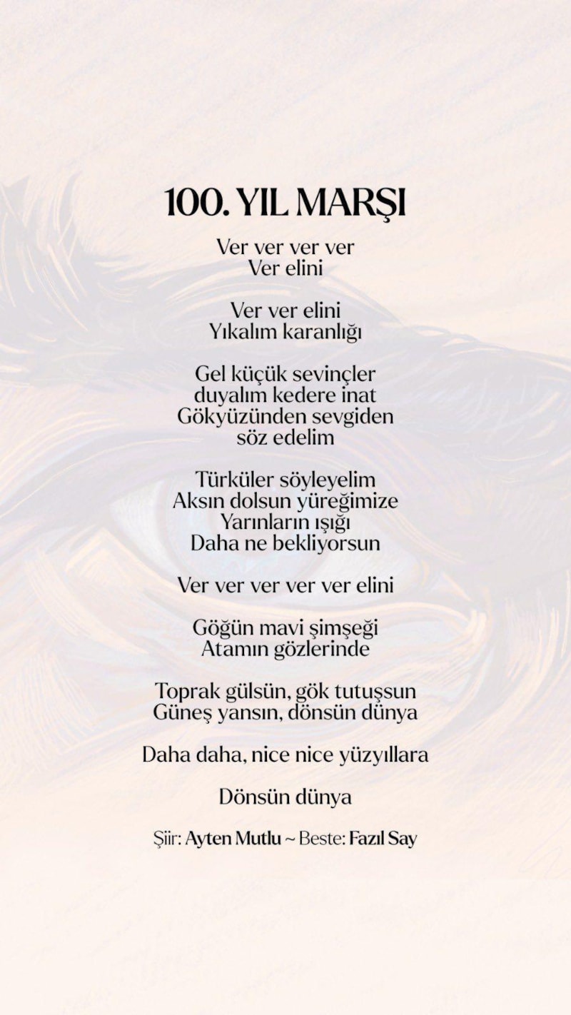 '100. Yıl Marşı' adını verdiği eseri sosyal medya hesabından yayınlayan Say, sözlerin şair Ayten Mutlu'ya ait olduğunu söyledi.