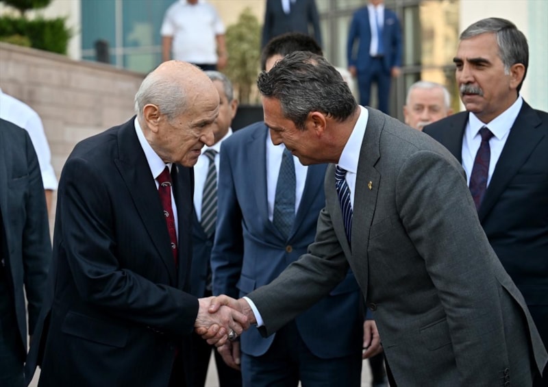 Basına kapalı gerçekleşen görüşme, yaklaşık bir saat sürdü.Görüşmenin ardından Ali Koç'u, genel merkez binasından Bahçeli uğurladı.