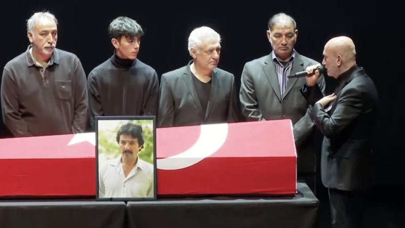Merhum sanatçı Ferdi Tayfur'un 2020 yılında yaşadığı böbrek rahatsızlığında kendisine böbrek bağışı yapan oğlu Timur Turanbayburt, AKM'deki veda töreni boyunca babasının tabutu başında bekledi.