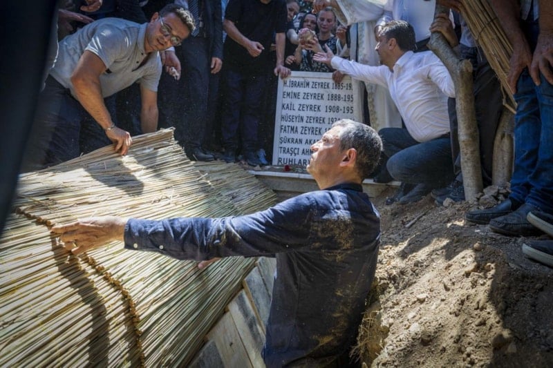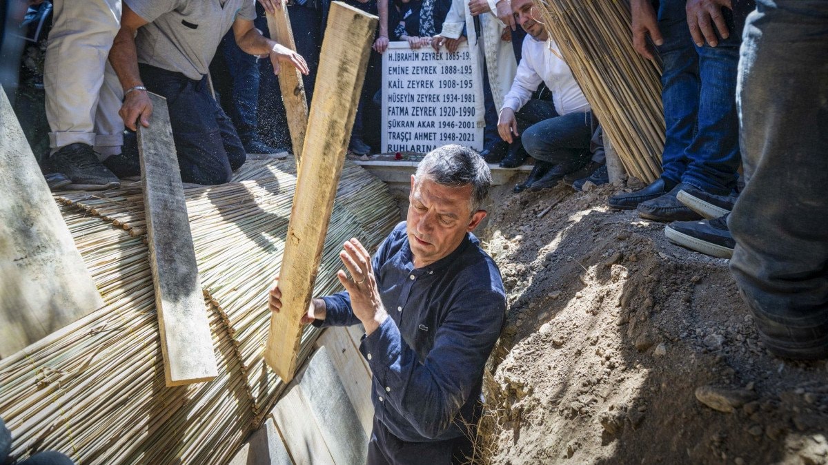 Mezarlıkta CHP Lideri Özgür Özel, mezara inerek Ferdi Zeyrek’in naaşını defnetti.
