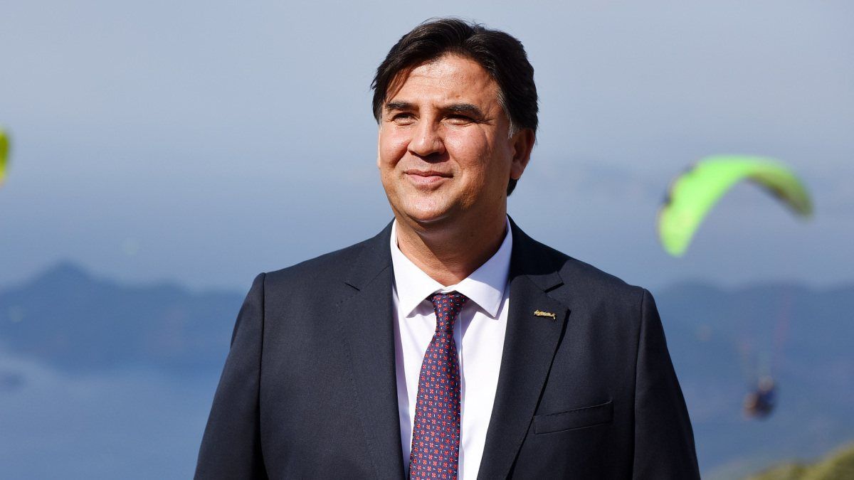 Fethiye Belediye Başkanı Karaca'nın fırlatarak Türk bayrağı dağıtması