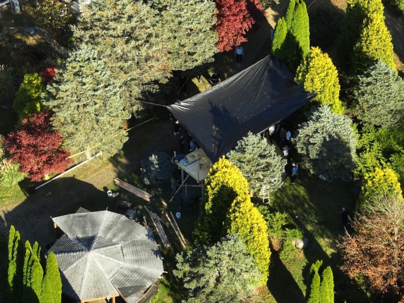 Örgüt üyeleri mezarı kazarken, basın mensuplarının havadan görüntü almasını engellemek için alanın üzerine siyah branda çekti. Çukurun etrafına da sarı şerit çekildi.