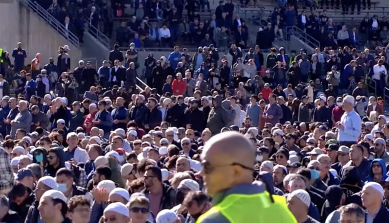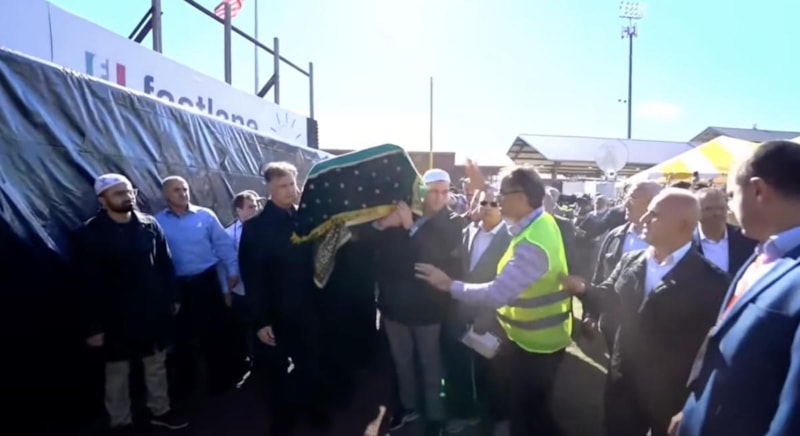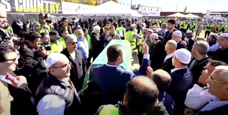 İçerideki tartışmalar devam ederken, New Jersey'de bulunan bir stadyumda FETÖ elebaşı için cenazesi töreni düzenleniyor.