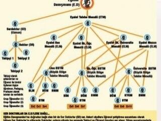 Gözaltına alınan FETÖ'cülerin sorgularından yola çıkarak hazırlanan şemanın en tepesinde "E.D." olarak adlandırılan Eğitim Danışmanları yer alıyor.