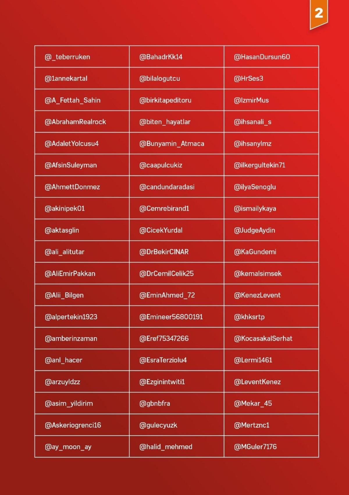Engellenen hesaplar arasında Hakan Şükür, Ekrem Dumanlı, Cevheri Güven gibi isimler yer alıyor.