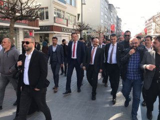 Bolu Beşiktaşlılar Derneği'ni ziyaret ettikten sonra Cumhur İttifakı'nın AK Parti adayı Fatih Metin ve Bolu Ülkü Ocakları Başkanı İsmail Akgül'le buluşan Başkan Orman, caddede yürüdü.
