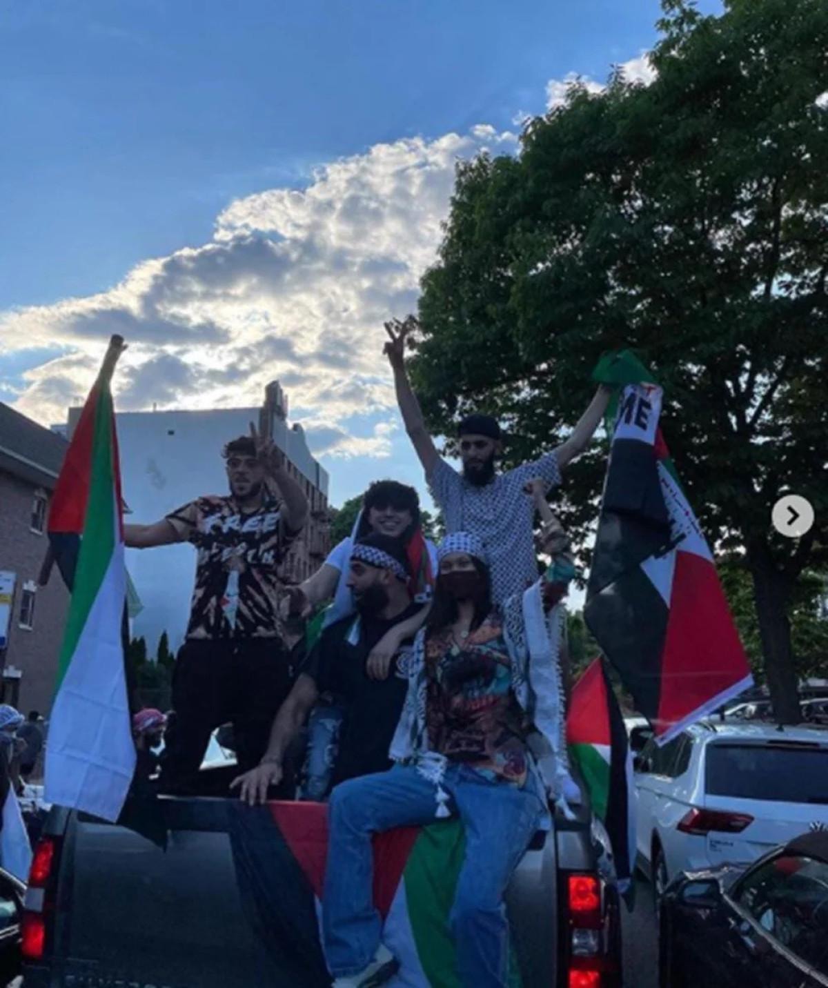 Protesto anında çekilen fotoğraflarını sosyal medya hesabında paylaşan Hadid, “Kalbimin hissetme şekli bu. Bu kadar güzel, zeki, saygılı, sevgi dolu, nazik ve cömert Filistinlinin etrafında olmak... Bütün hissettiriyor! Biz ender bir cinsiz! Filistin özgür kalana kadar Özgür Filistin!” mesajını yazdı.