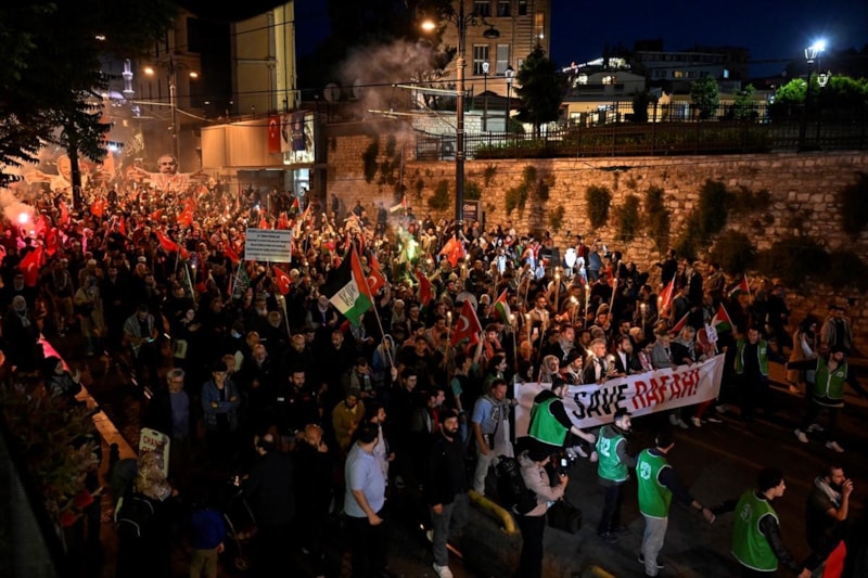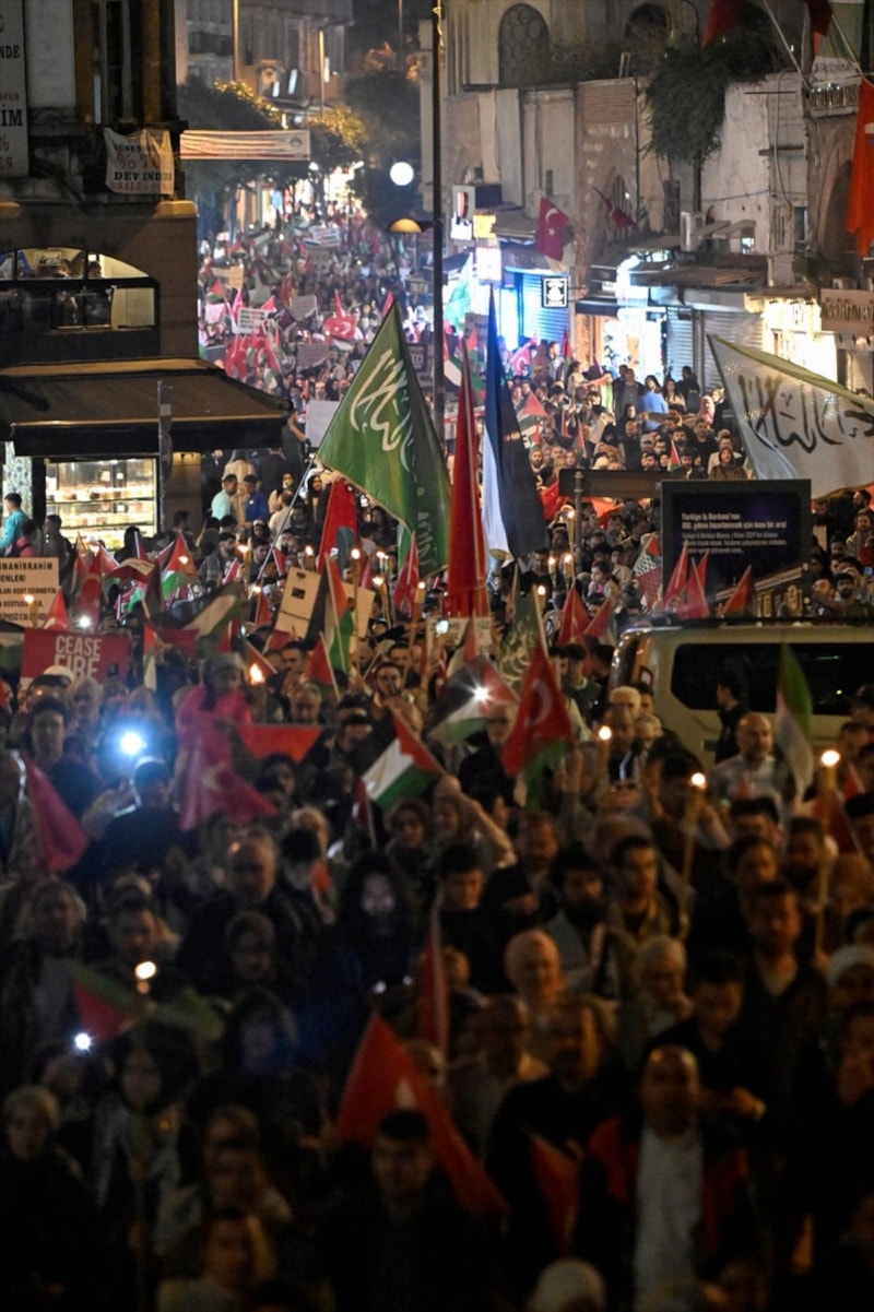 İnsan Hak ve Hürriyetleri (İHH) İnsani Yardım Vakfı, "İşgalin son bulması ve Filistin’in özgürlüğü için meşalelerle yürüyoruz" sloganıyla Ayasofya-i Kebir Cami-i Şerifi önünden Eminönü Meydanı'na bir yürüyüş düzenledi.