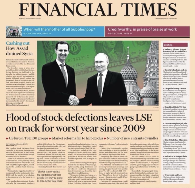 Financial Times, Suriye'de devrilen rejimin zalim diktatörü Esad'ın 2018-2019 yılları arasında 21 uçuşla yaklaşık 2 ton euro ve 250 milyon dolar nakiti Rusya'ya gönderdiğini ortaya çıkardı.